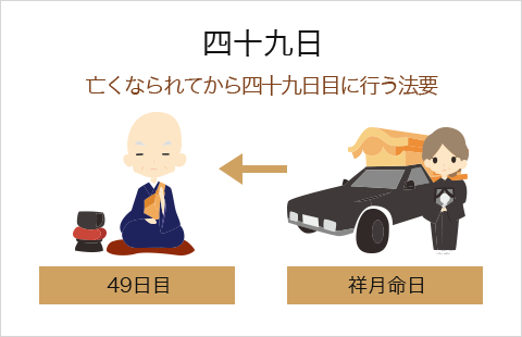 亡くなった日を1、翌日を2と数えて49日目に行われる法要をさします。