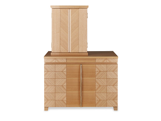 ルノーブ / ロアーズでは、熟練された匠の技法を用い、矢羽模様を扉の前面にあしらいました。